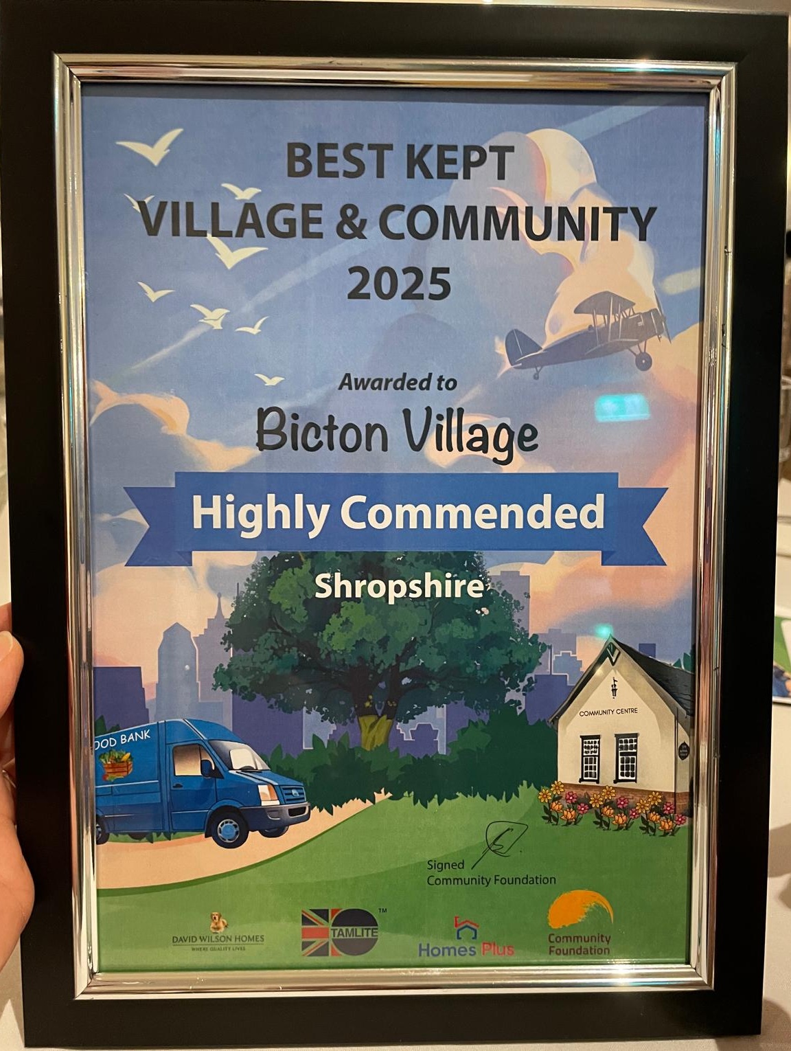 Bicton has been awarded 'Highly Commended' in the Best Kept Village Competition
